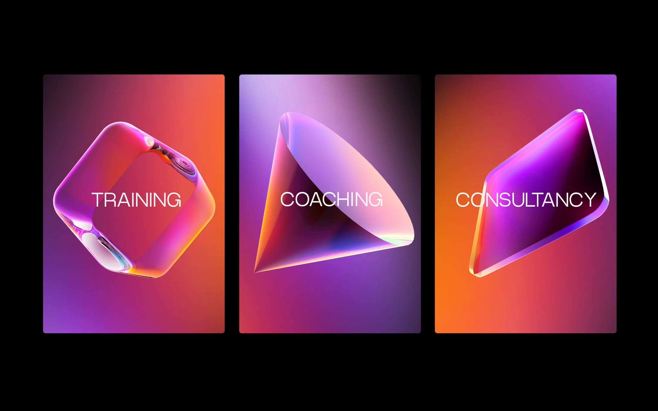At the heart of the brand are a set of beautiful 3D shapes – full of colour, depth and intrigue and used throughout the brand world to give the company a recognisable look and feel. From presentation slides to lanyards, from cases and bags to digital, the shapes are there to move in and out of typography, giving a visual representation of topics being front and centre, and less important things being blurred behind.
