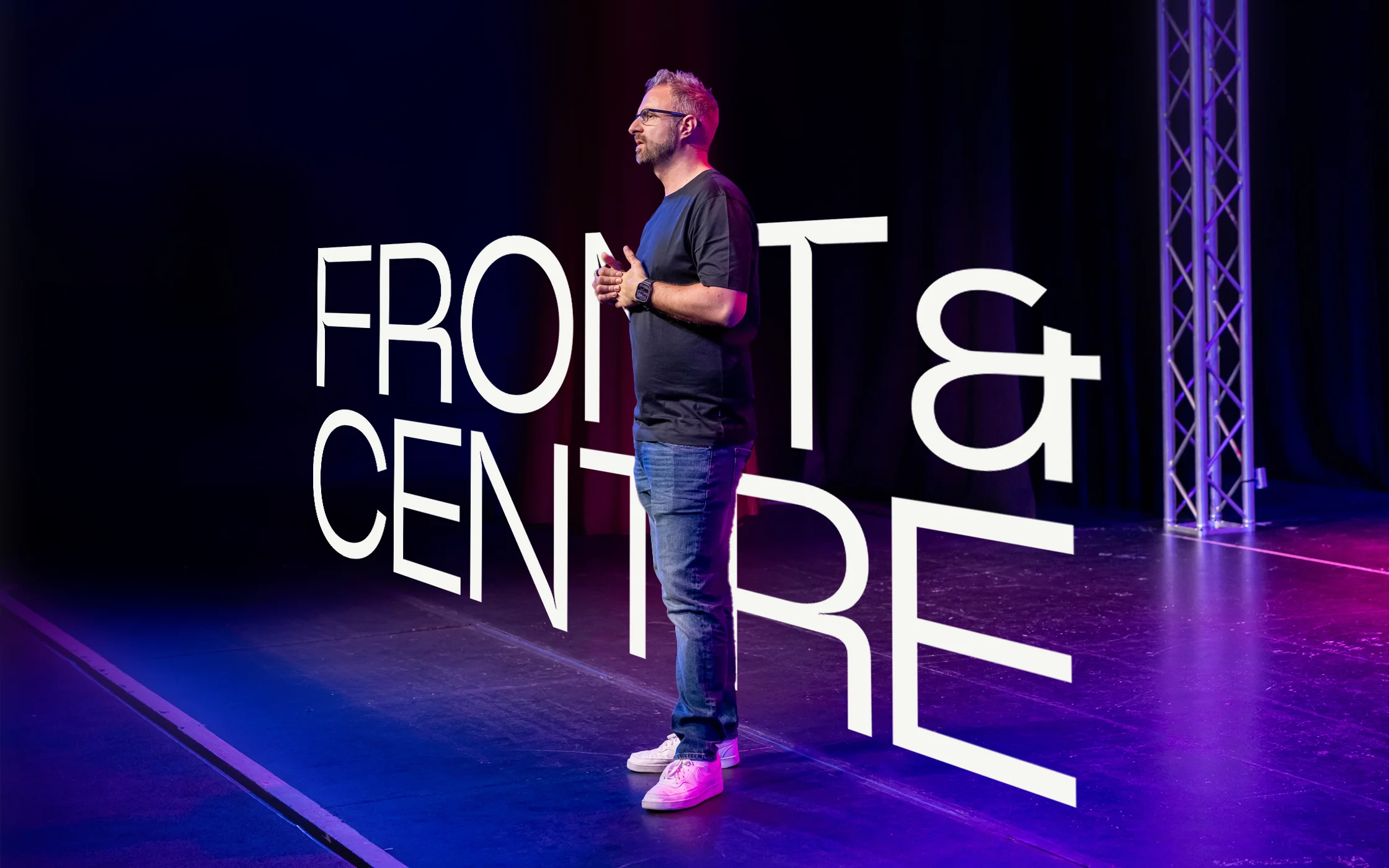 When your client trademarks the word ‘neurospicy’ and confesses that he loves the stage, the spotlight and performing, it’s a chance to build a brand world around their passion and purpose. Front&Centre was the perfect chance to do this – creating a persona for David and his speaking, shooting new content, creating a photography style, building a whole set of brand assets and using David’s spicy ‘phrases’ wherever we could.