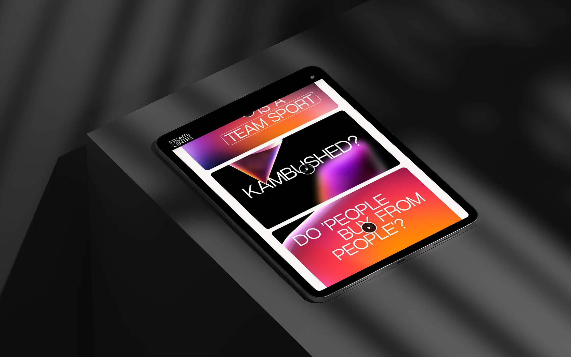 When your client named KAMguru says “I hate the word guru and nobody knows what KAM means”, well you’ve got yourself a branding problem. Founder and front man David Ventura needed someone to get inside his head. He knew his name and brand didn’t work anymore, the focus on KAM (Key Account Management) had become too niche as he trained and coached on everything from leadership through to sales. We ran an intense set of branding workshops with the self-confessed ‘neurospicy’ founder and we uncovered something. Whatever the client’s issue was, David and his team always kept the issue front and centre of their programme, from leaders without followers to customer care that isn’t very caring. Front&Centre® was born. The brand that puts your key pain point or opportunity front and centre.